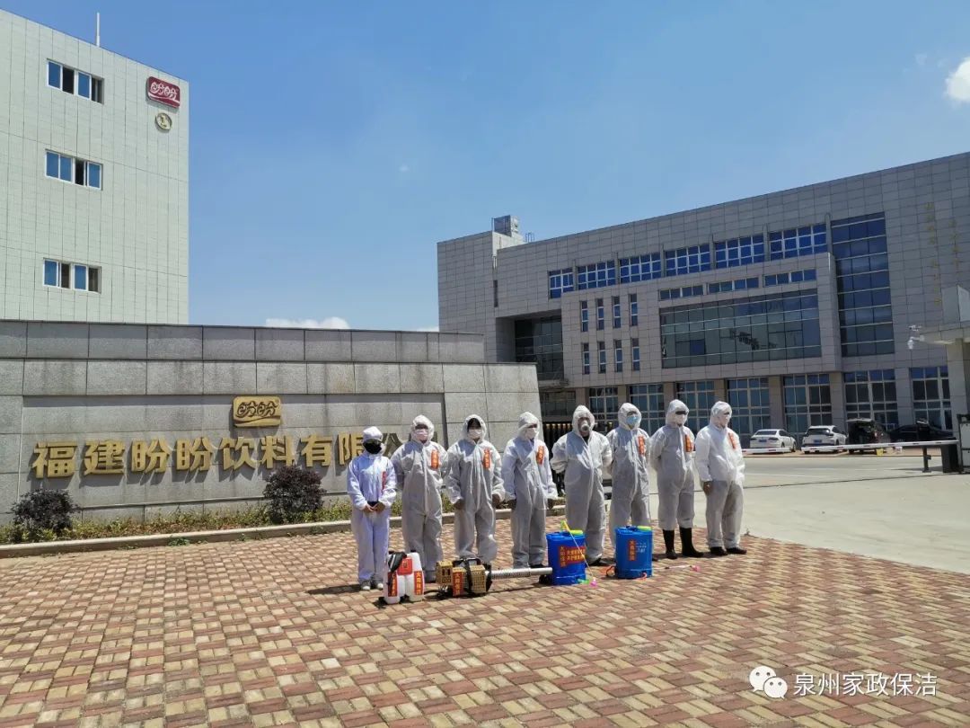 2020年4月19日,泉州大陽(yáng)保潔服務(wù)有限公司的8名專業(yè)消殺人員全副武裝的來(lái)到了福建省晉江福源食品有限公司、福建盼盼飲料有限公司。他們將對(duì)這兩個(gè)地方的辦公大樓、宿舍樓、公區(qū)走道等重要區(qū)域進(jìn)行一場(chǎng)義務(wù)消殺。